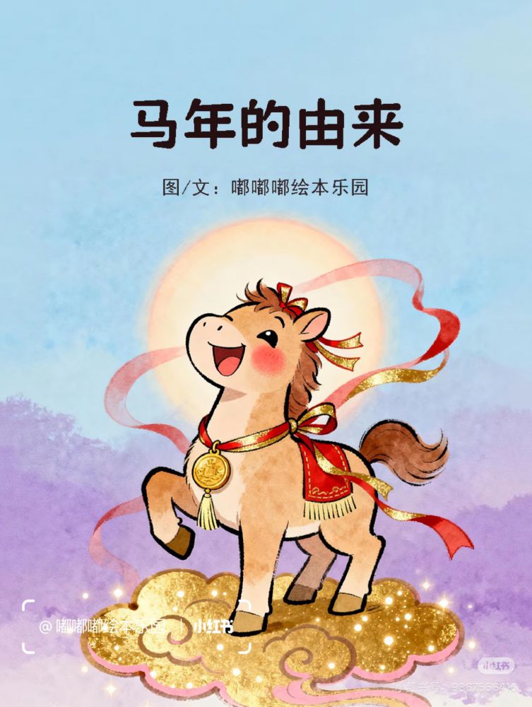绘本《马年的由来》以生动有趣的神话故事为载体,讲述了马凭借勤恳踏实的品质在十二生肖中占据一席之地的缘由。书中画面色彩明快饱满,人物与动物形象憨态可掬,十分贴合幼儿的审美与认知特点;简洁易懂的语言搭配朗朗上口的短句,既适合亲子共读,也能让大班幼儿自主翻阅理解。故事不仅向孩子传递了生肖文化的奥秘,更蕴含着对勤劳、勇敢品质的赞美,是一本兼具知识性与趣味性的新年文化启蒙绘本。